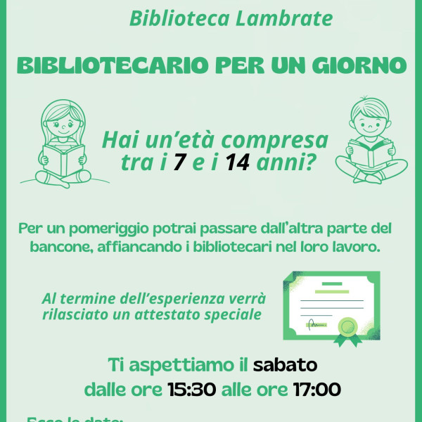 Hai un'età compresa tra i 7 ed i 14 anni? Per un pomeriggio potrai passare dall'altra parte del bancone, affiancando i bibliotecari nel loro lavoro.