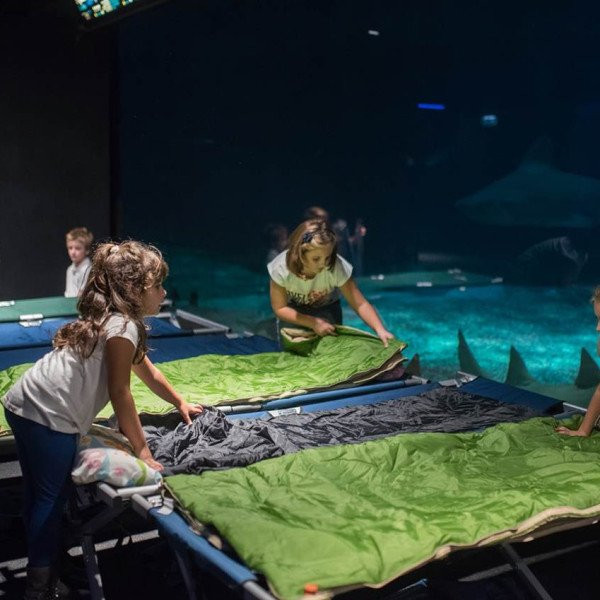 L’avventura ha inizio alle ore 21.00. E’ prevista la visita guidata notturna dell’Acquario, attività di animazione, l’allestimento delle brandine davanti alla vasca degli squali e il pernottamento in sacco a pelo.