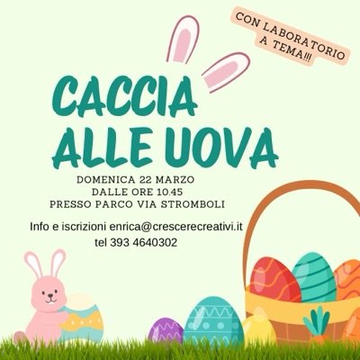 Nel parco si nasconderanno tante uova di Pasqua e solo i piccoli esploratori più attenti riusciranno a trovarle tutte! Guardate bene dietro agli alberi, vicino alle panchine e lungo i sentieri… le uova potrebbero essere ovunque.