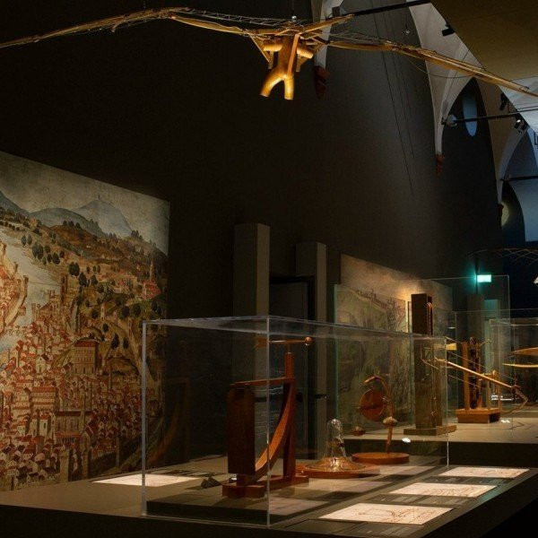 Una spettacolare scenografia ti accompagna in un viaggio tra l’arte della guerra, il lavoro e la produzione, il volo, le vie d’acqua e l’architettura che si conclude con uno sguardo sull’influenza di Leonardo nella pittura lombarda del Rinascimento e un’installazione immersiva dedicata ai disegni degli ultimi anni.